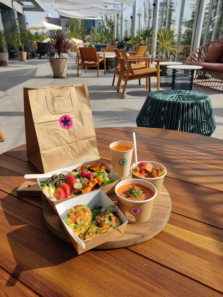 Los Open Air Meetings incluirán distintas variedades en la oferta gastronómica. Coffee breaks basados en productos saludables como los healthy bolws de yogurt, cremas vegetales con cereales y toppings, frutas de temporada en su mejor momento de consumo, jugos de frutas naturales y refrescantes tés fríos, todos ellos presentados de manera individual. Además, a la oferta habitual de almuerzos y cenas se añadirá una oferta mobile de picnic lunch para comer de una forma sana, desenfadada y casual al aire libre, una manera divertida y, ante todo, segura de consumir los mejores productos en los Open Air meetings.