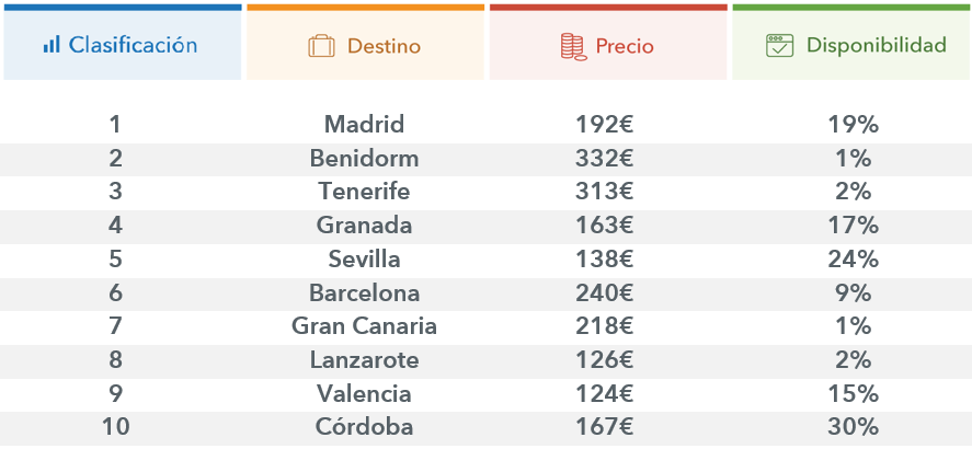 El buscador de hoteles trivago.es analiza cuáles son los destinos nacionales más buscados por los usuarios españoles para pasar Nochevieja, estudiando sus precios y disponibilidad hotelera. El análisis revela que Madrid es el destino más buscado para despedir 2015. A ...leer más