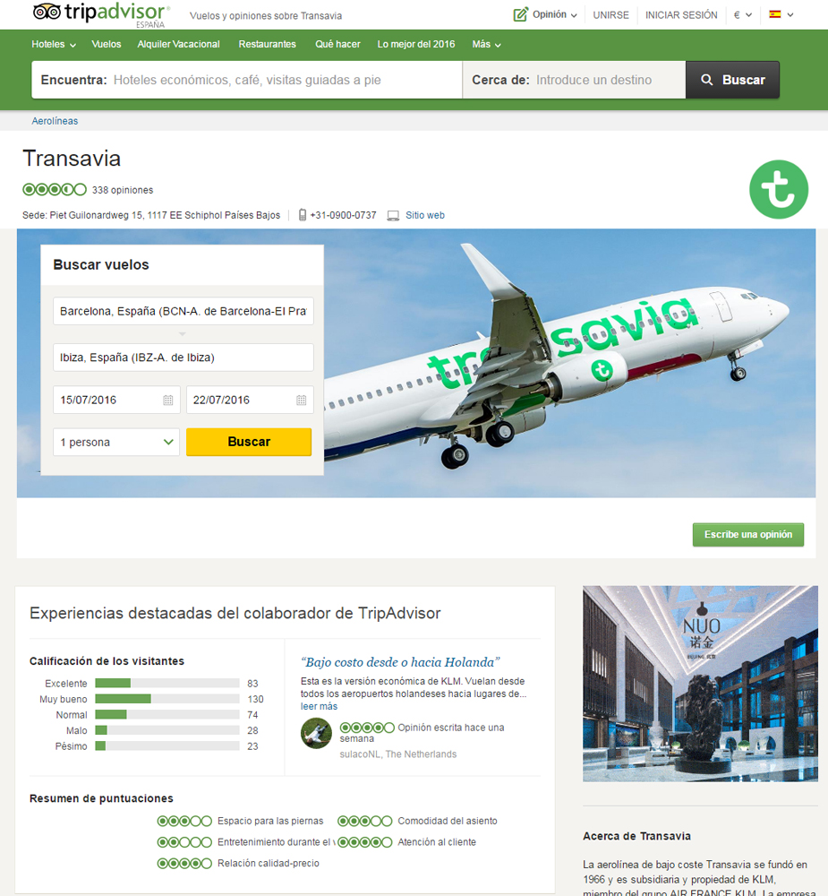 TripAdvisor® anuncia hoy la introducción en la web de Opiniones sobre Compañías Aéreas, así como un nuevo rediseño del servicio de búsqueda de vuelos y el lanzamiento en beta de su sistema de puntuación de vuelos, que valora la calidad ...leer más
