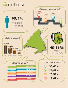 A través de una encuesta realizada a viajeros por el portal de alojamientos rurales Clubrural.com, el perfil del turista rural de madrileño es un viajero mayor de 40 años que viaja a más de tres horas de su vivienda.