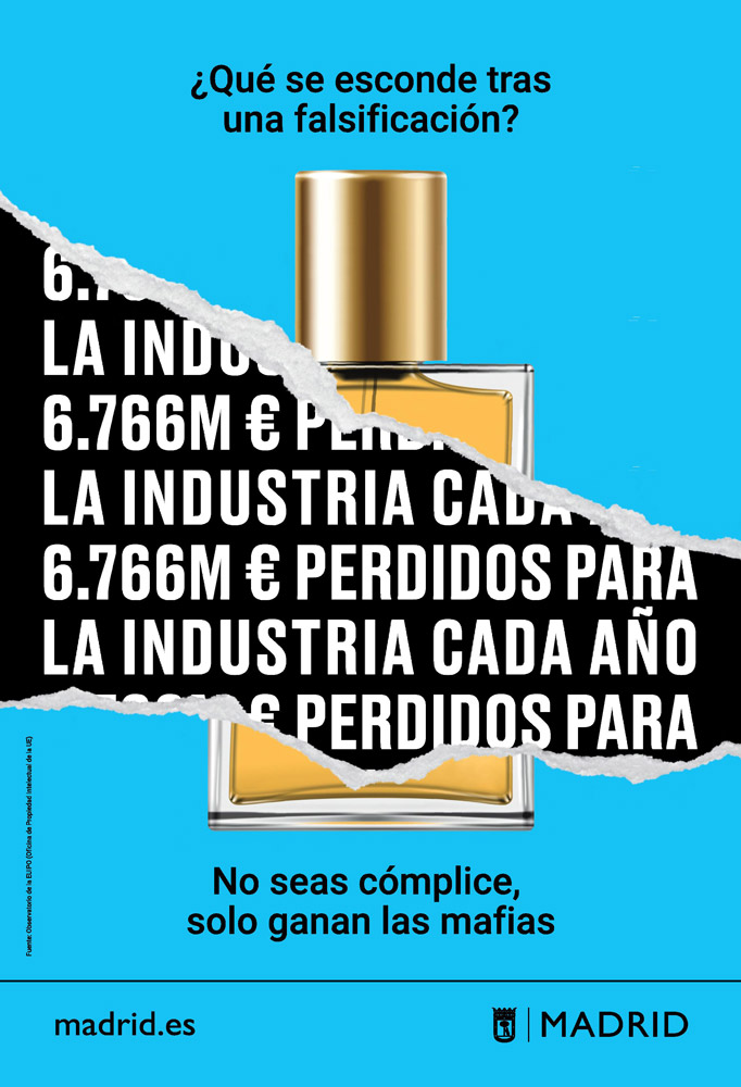 Con el título ¿Qué se esconde tras una falsificación?, esta campaña estará presente hasta el 24 de noviembre en Renfe Cercanías, Metro Madrid, intercambiadores, universidades, centros comerciales, además de en los soportes municipales tradicionales, como mupis, marquesinas y pantallas digitales.
