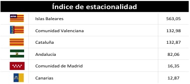 Para poder cuantificar estas diferencias, Brainturst ha construido un índice de estacionalidad, cuyos resultados serían los siguientes: