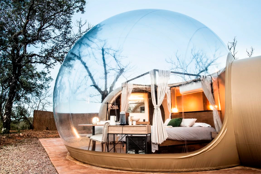 En un entorno natural de colinas, dehesas y cielos abiertos, Horizonte Bubble Rooms propone una experiencia sensorial pensada para parejas que buscan celebrar momentos especiales. Sus burbujas transparentes permiten dormir bajo las estrellas y despertar con la luz dorada del amanecer, manteniendo siempre la intimidad y el confort.