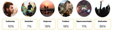 Los hiperconectados son hombres con un nivel de estudios medio, muy activos en las redes sociales donde comparten tanto su día a día como sus viajes. Con un perfil extremadamente digital y siempre al tanto de las últimas tendencias, este segmento de viajeros organiza su vida ayudándose de dispositivos electrónicos, lleva un estilo de vida sano y prefiere tener muchos planes antes que quedarse en casa.